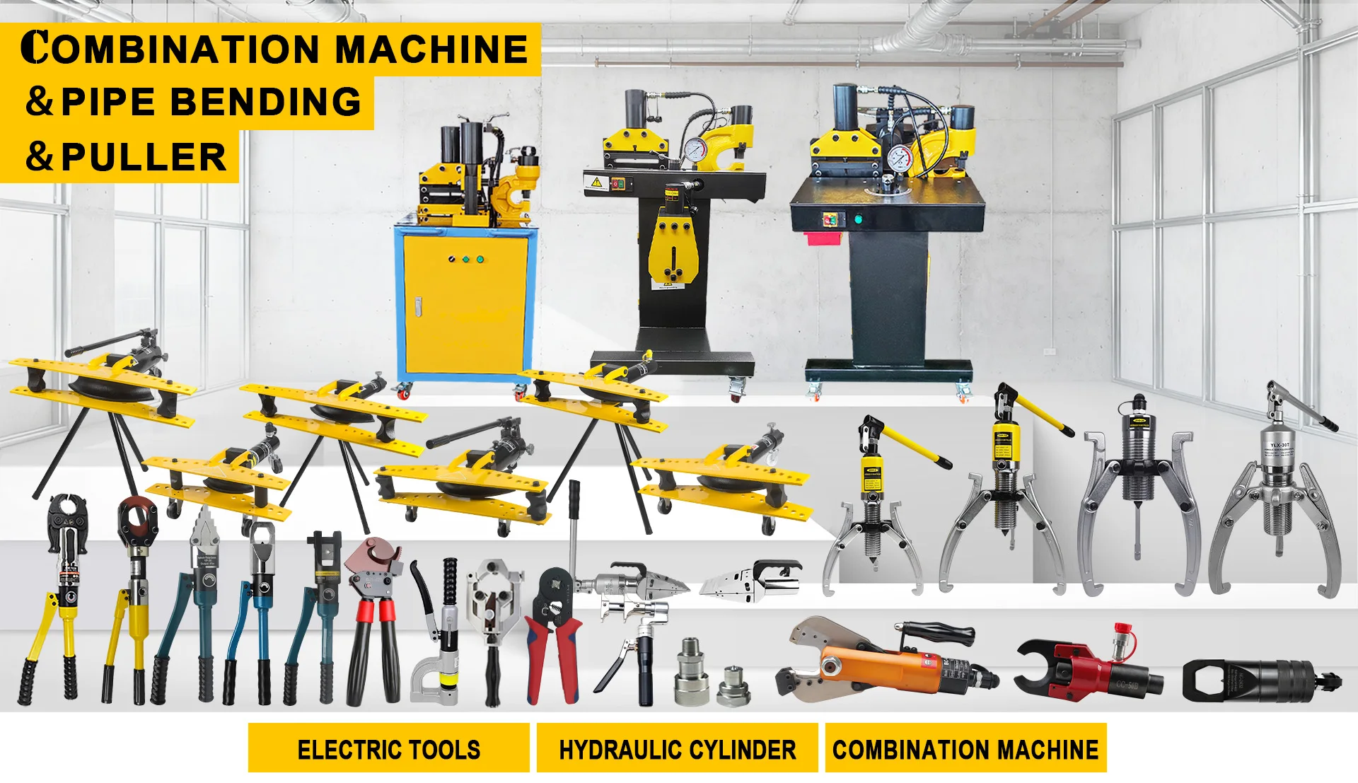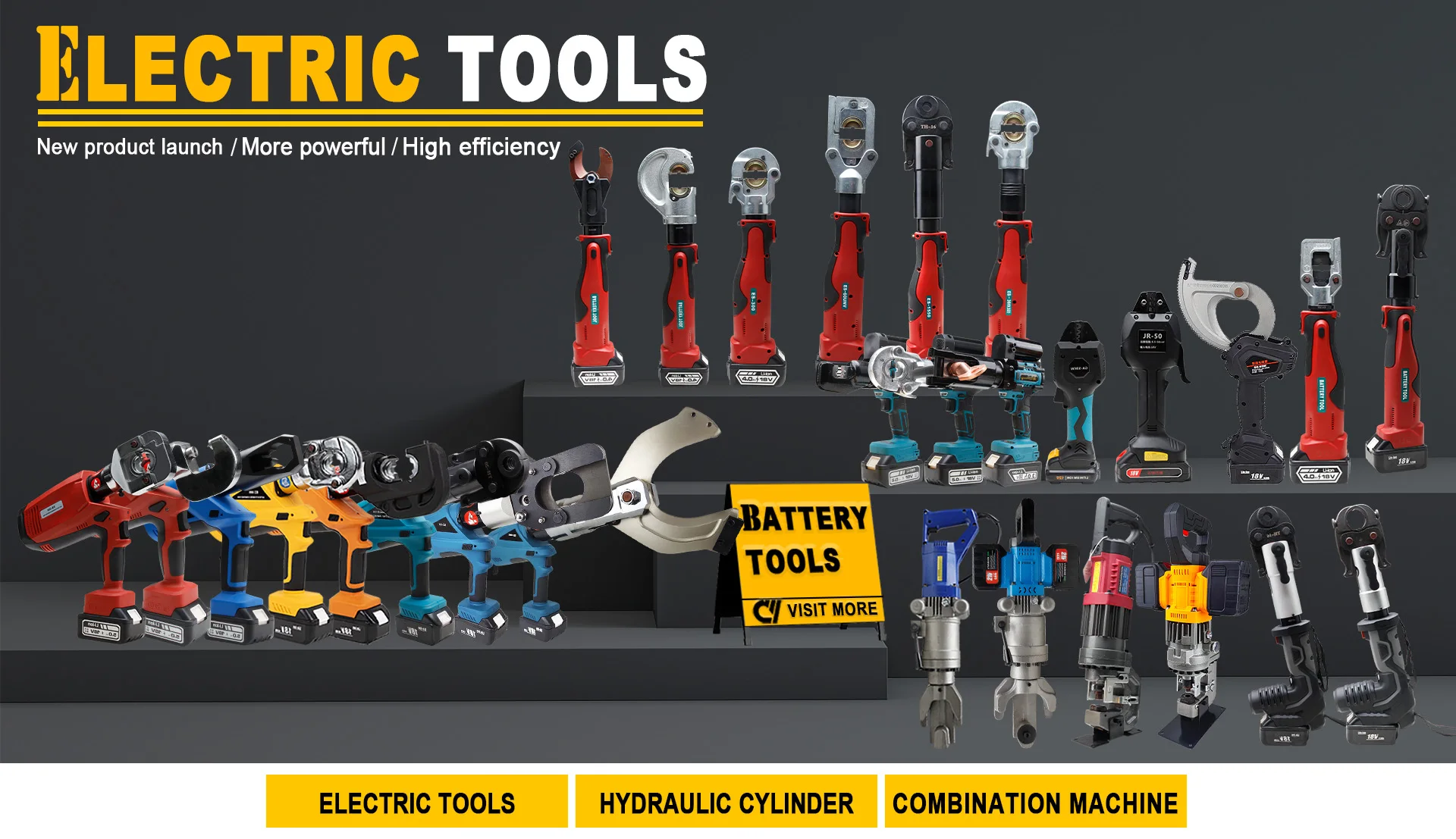 Productos principales:Bomba eléctrica, herramienta de Prensado hidráulico, máquina de procesamiento de barras colectoras, cilindro de gato hidráulico, cortador de cable hidráulico